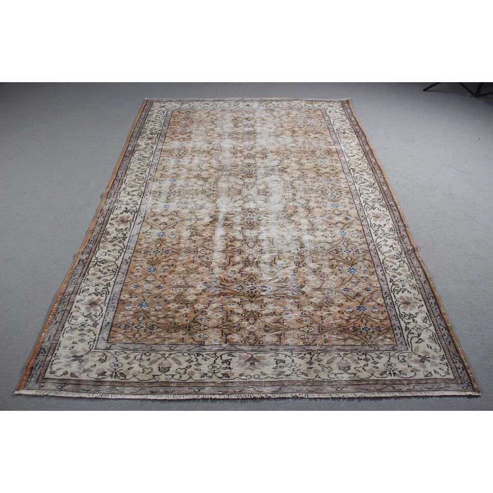 5.7x8.7 ft Rug, Turkish Vintage Rug, Brown Floral Wool Rug