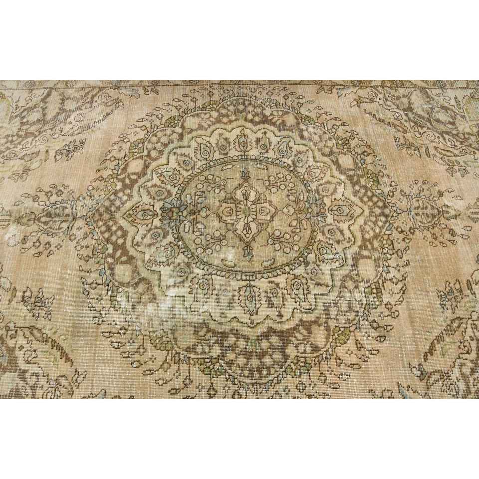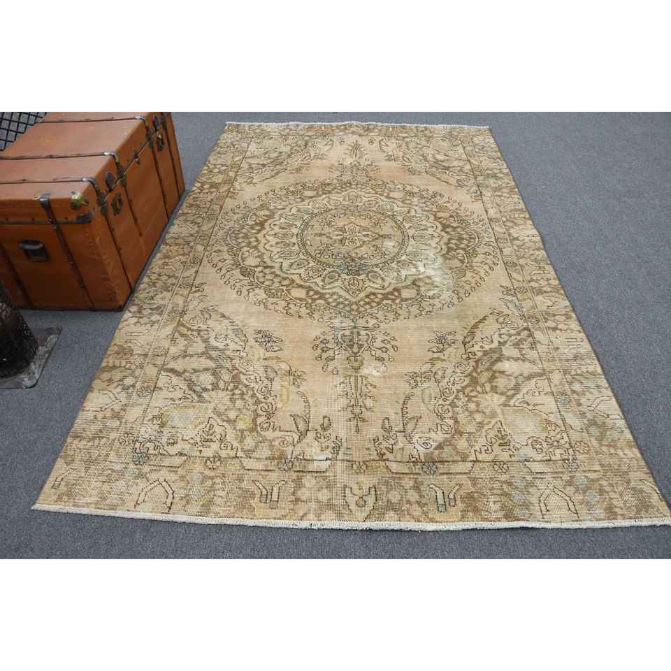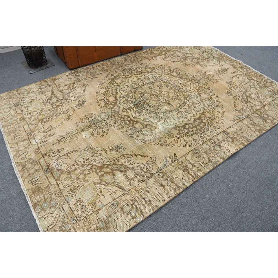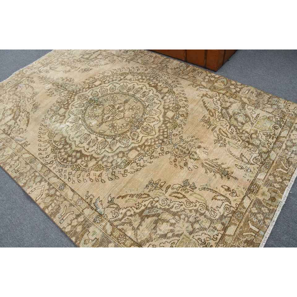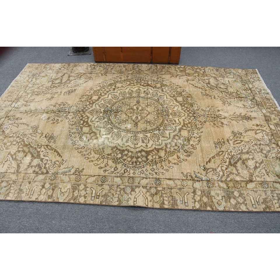 5.7x8.8 ft Turkish Rug, Vintage Large Rug, Brown Blue Bordered Wool Rug