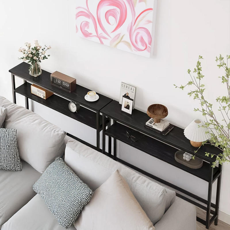 slim console table, narrow entryway furniture, 2-tier storage solution