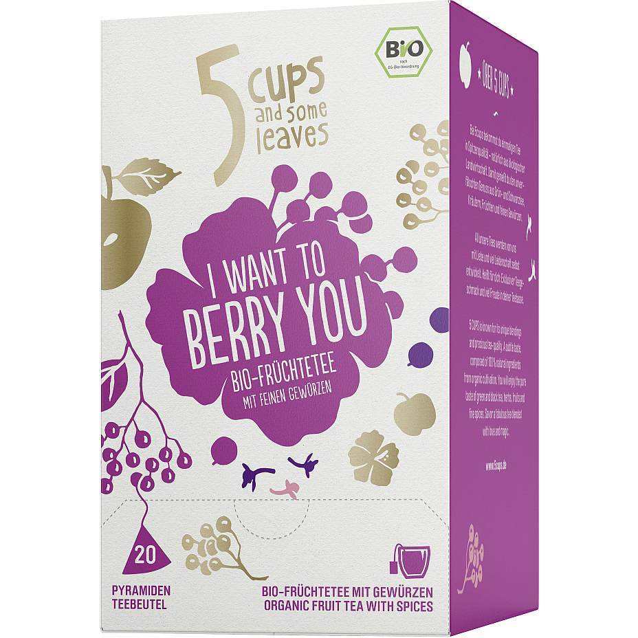 5 Cups BIO I Want to Berry You 20er Organic Herbal Tea Freshly Processed Fruit Flower Instant Fruit Tea in Tea Bag Packaging