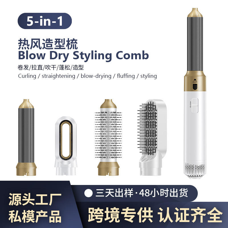 5 In 1 Hot Air Comb With Tourmaline Ceramic For Voluminous Styling Curling Straightening Portable Hair Dryer Brush Electric