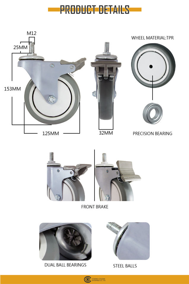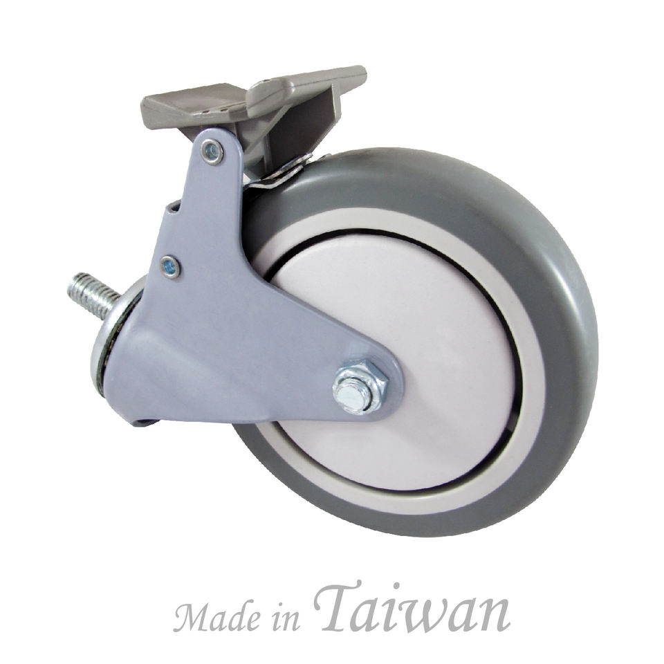 5 Inch Thread Stem Heavy Duty Castor TPR Rubber Wheel With Brake