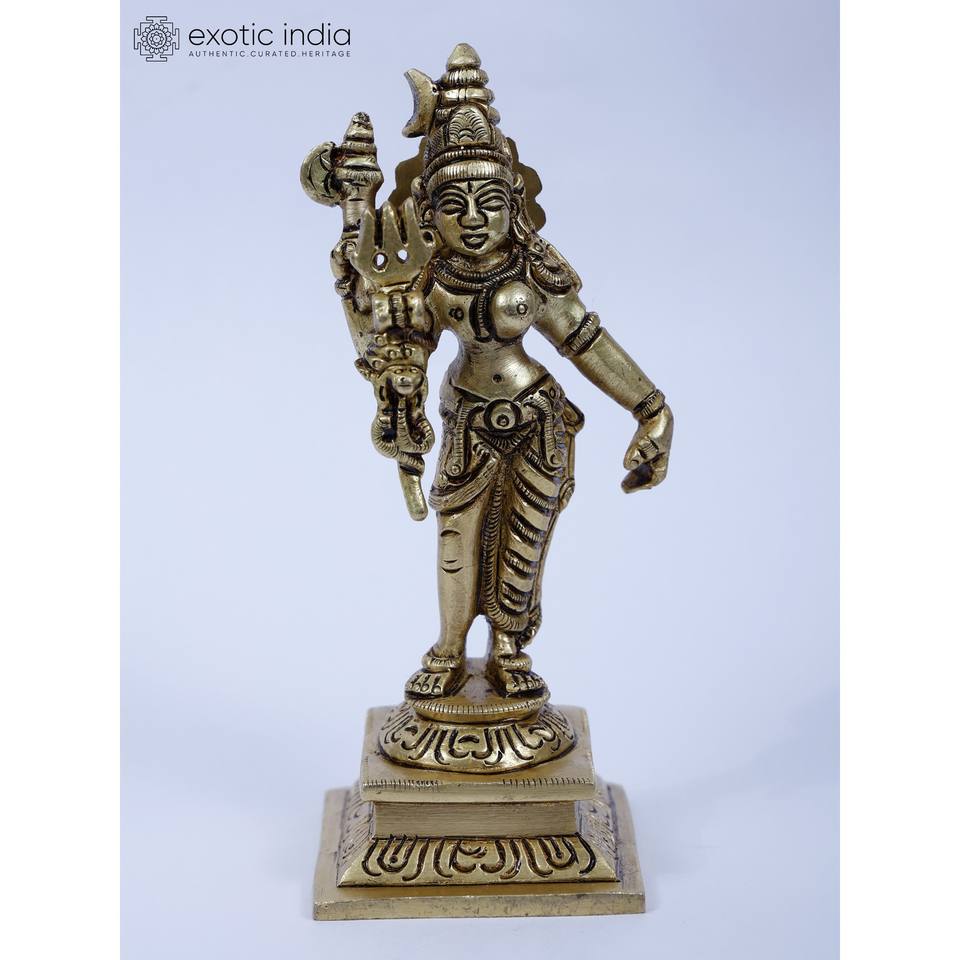 5 Inches Handmade Fine Small Brass Sculpture of Ardhanarishvara Shiva-Shakti for Home Decor and Temple Made In India
