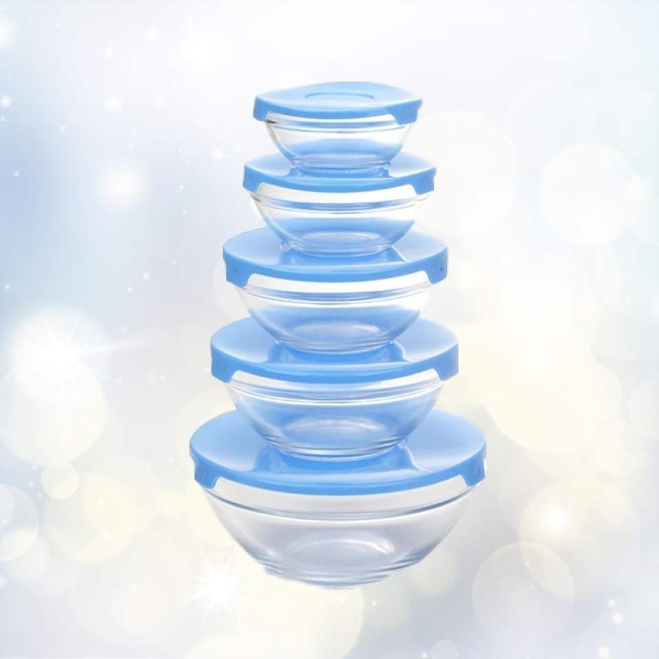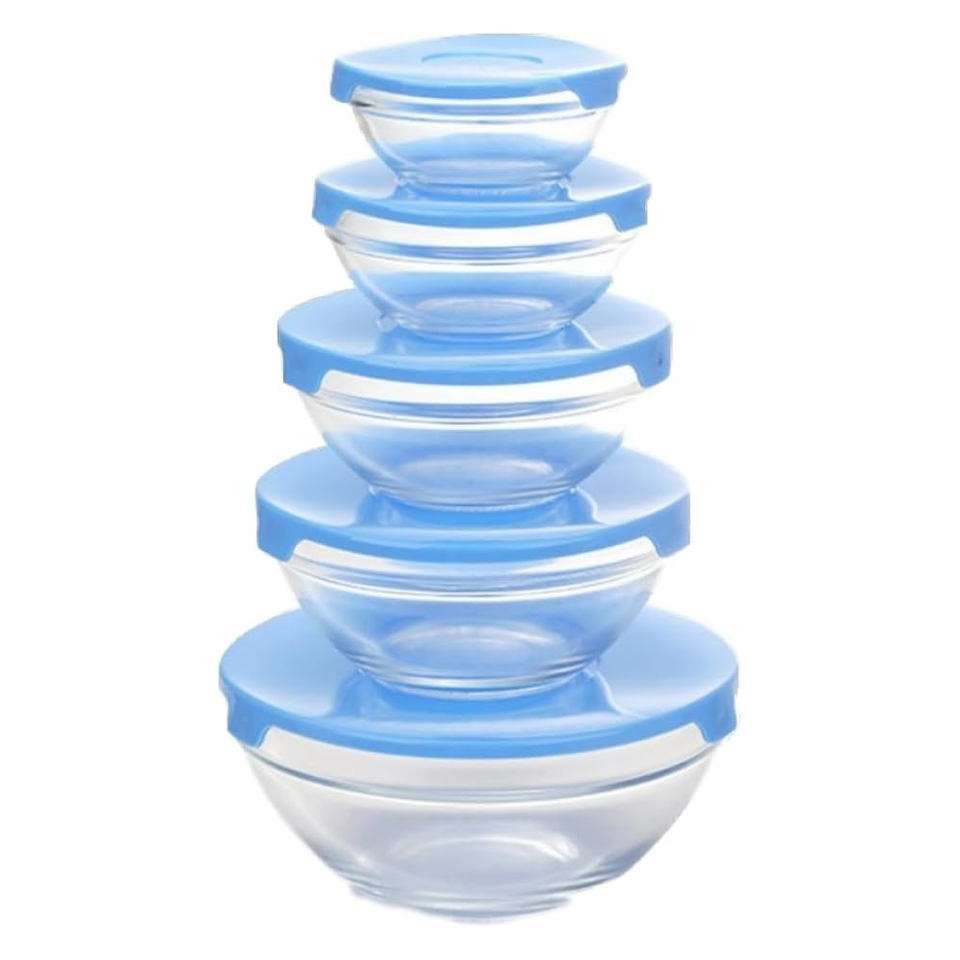 5 Pack Transparent Modern Kitchen Glass Bowl Set with Freshness Preservation for Food Storage