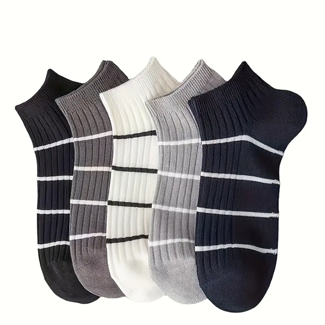 5 Pairs of Men'S Striped Sports Socks, Stylish And Versatile for All Seasons