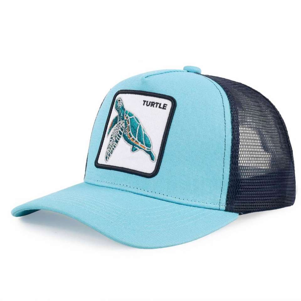 5-Panel Mesh Baseball Snapback Hat Customized Trucker Cap 3D Embroidery Animal Design Double Breasted Buckle Closure Business
