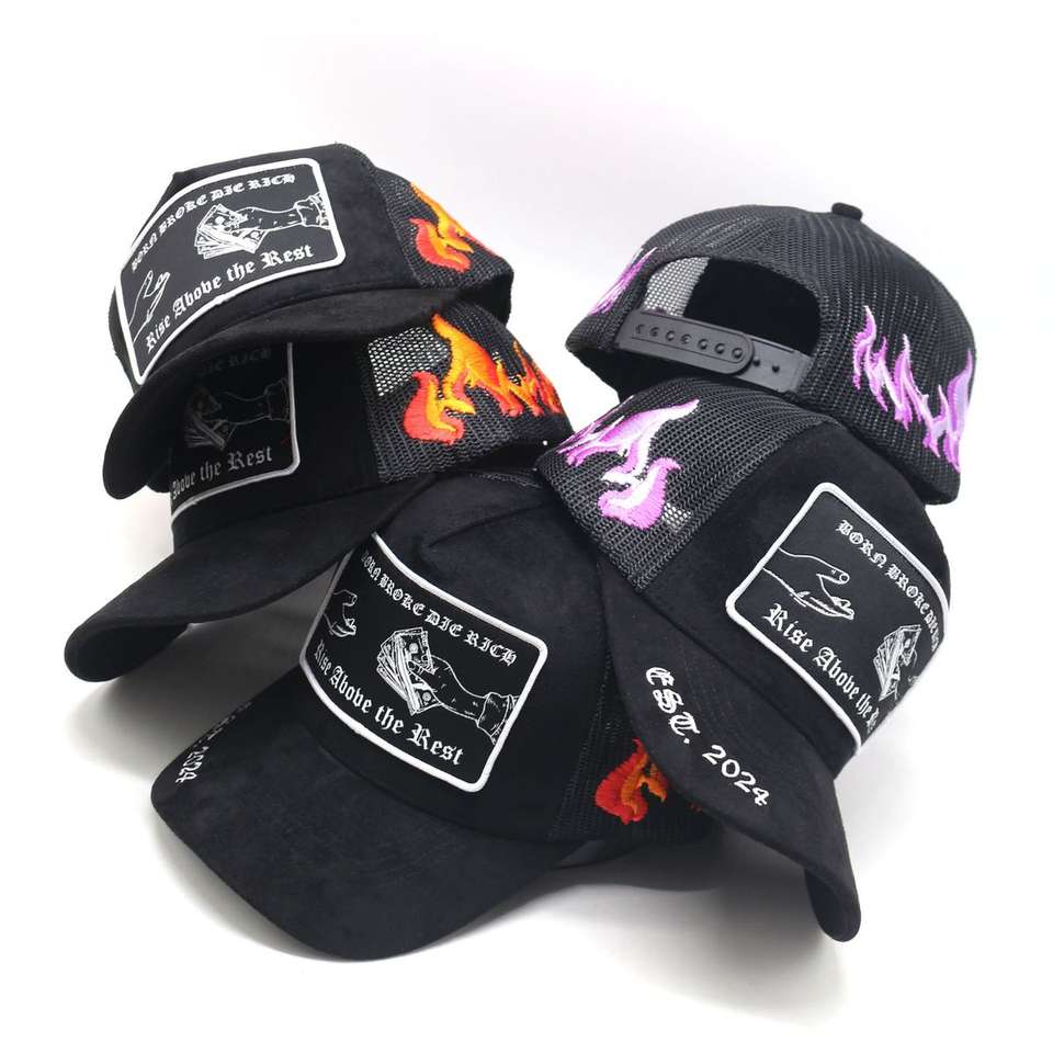 5 Panel Screen Print Mesh Caps Hats Custom Suede Flames Trucker Hat