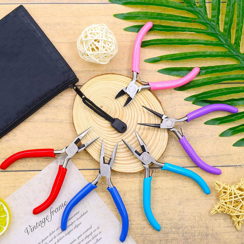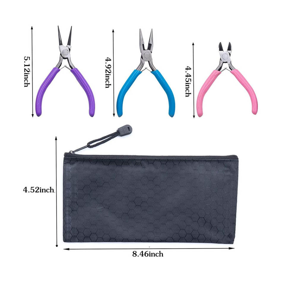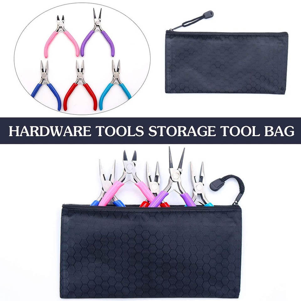 5 Pcs Black Pouches for Jewelry Making Pliers Tools Including Needle Nose Chain & Round Working Pliers on Sale!