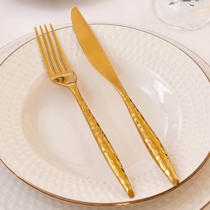 5 Pcs Elegant Gold Plated Flatware Cutlery High Quality Dining Table Use for Party Mirrored Metal Cutlery Set for Decor