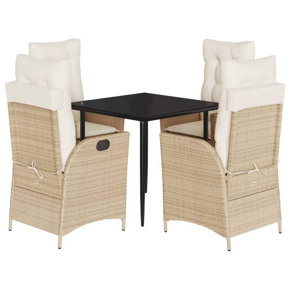 5-Piece Beige Poly Rattan Patio Dining Set with Cushions Garden Sets