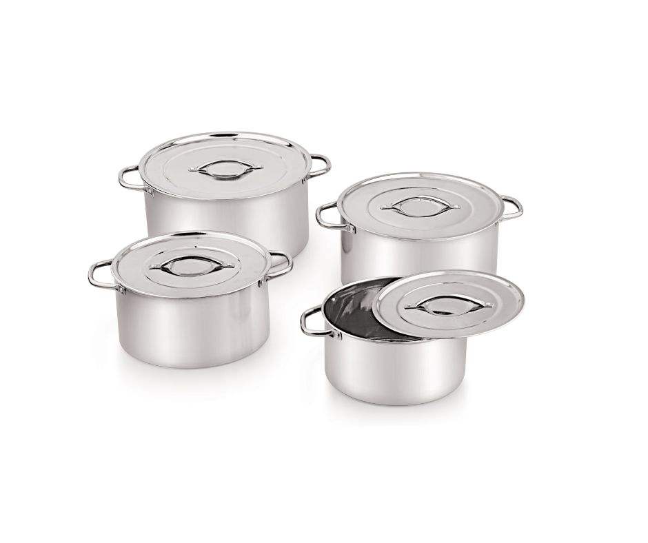 5 Piece Full Stainless Steel Soup Stock Pots Set Ergonomic Handles Lids Classic Design Flat Bottom Dishwasher Safe Pot