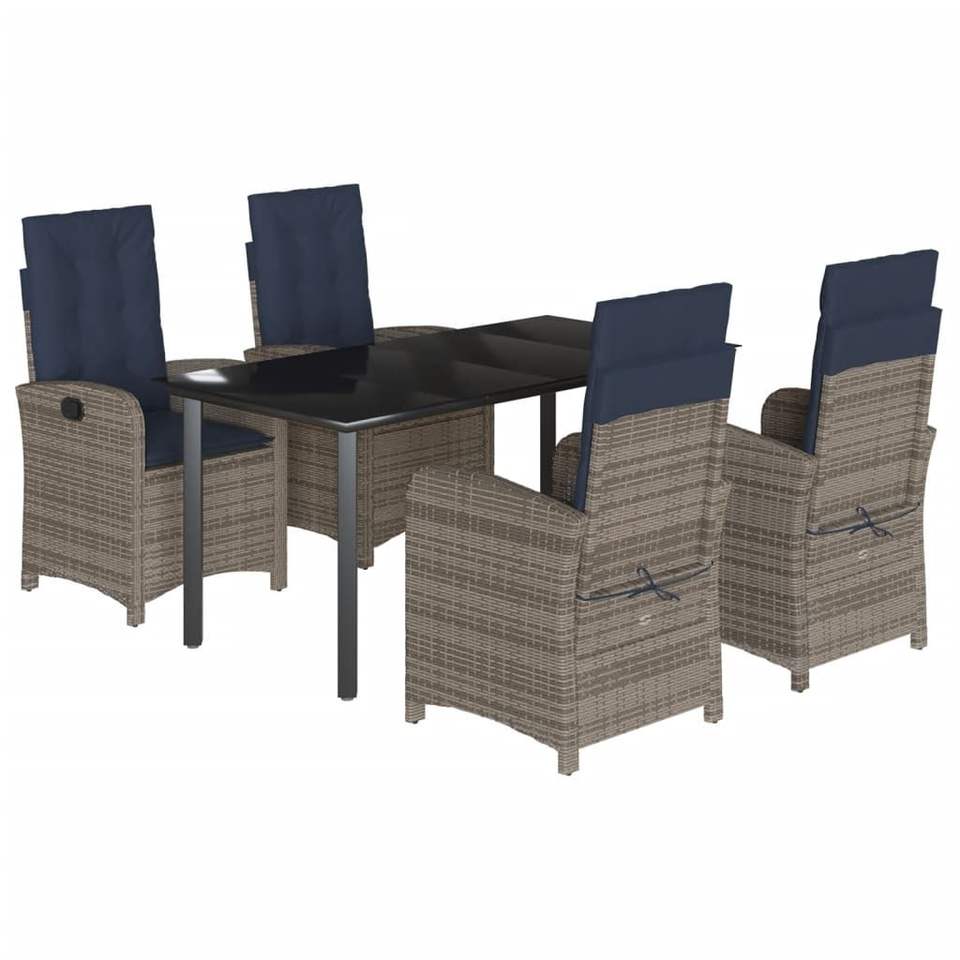 5 Piece Gray Poly Rattan Patio Dining Set with Cushions Elegant Garden Sets