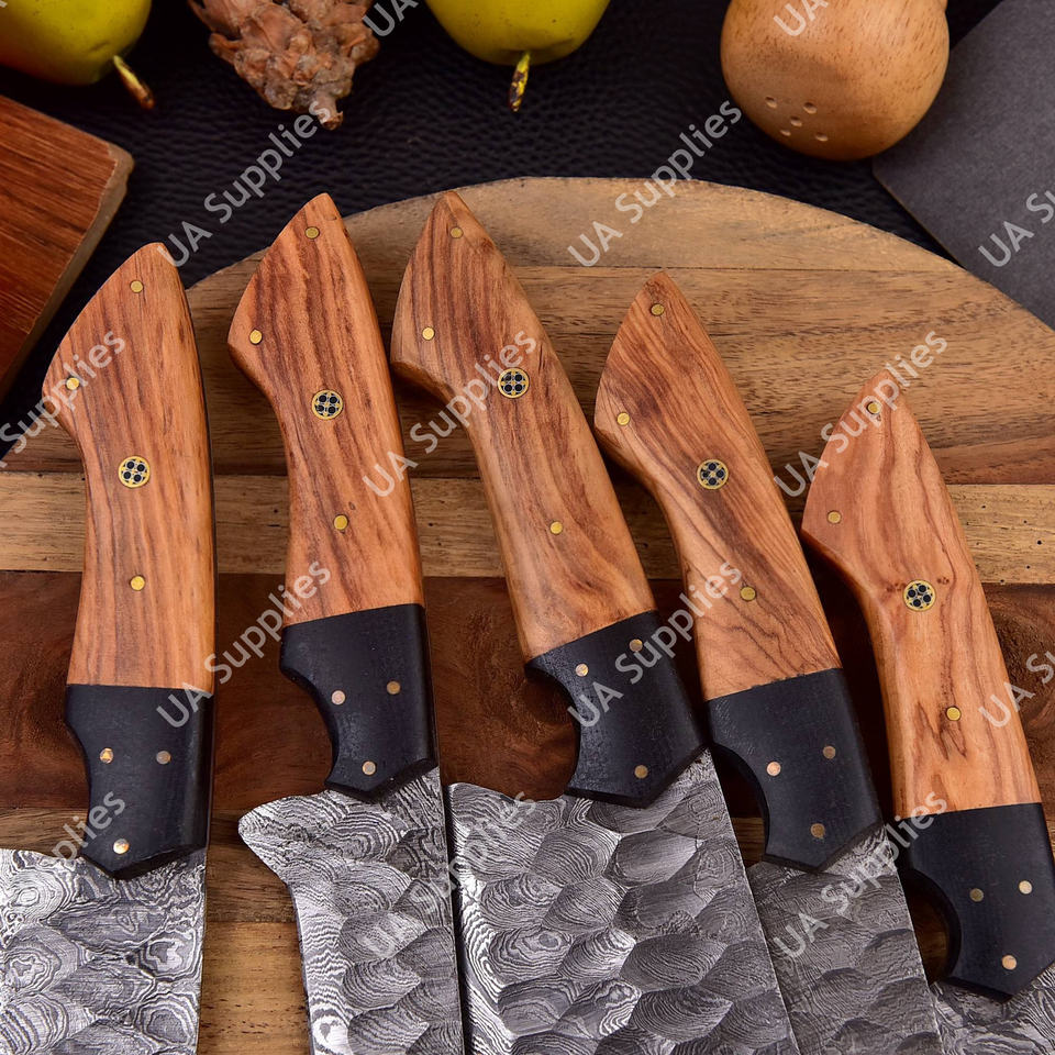 material:Damascus steel & Olive Burl Wood
