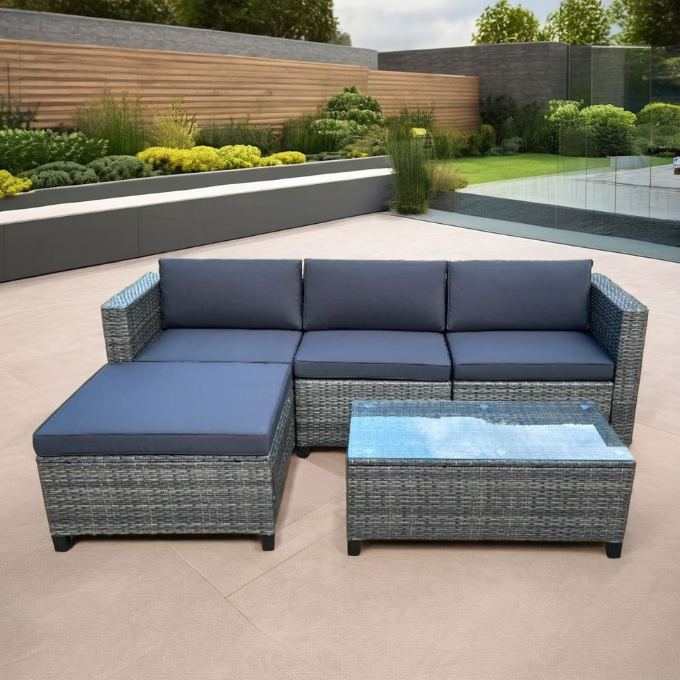rattan, steel, tempered glass, polyester cushionmaterial