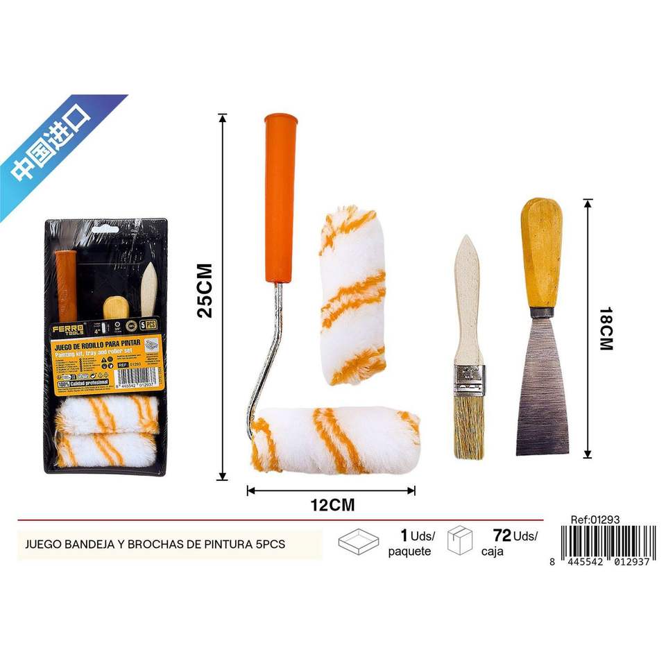 5-Piece Paint Tray and Brush Set Essential Tool Supplies for Painting