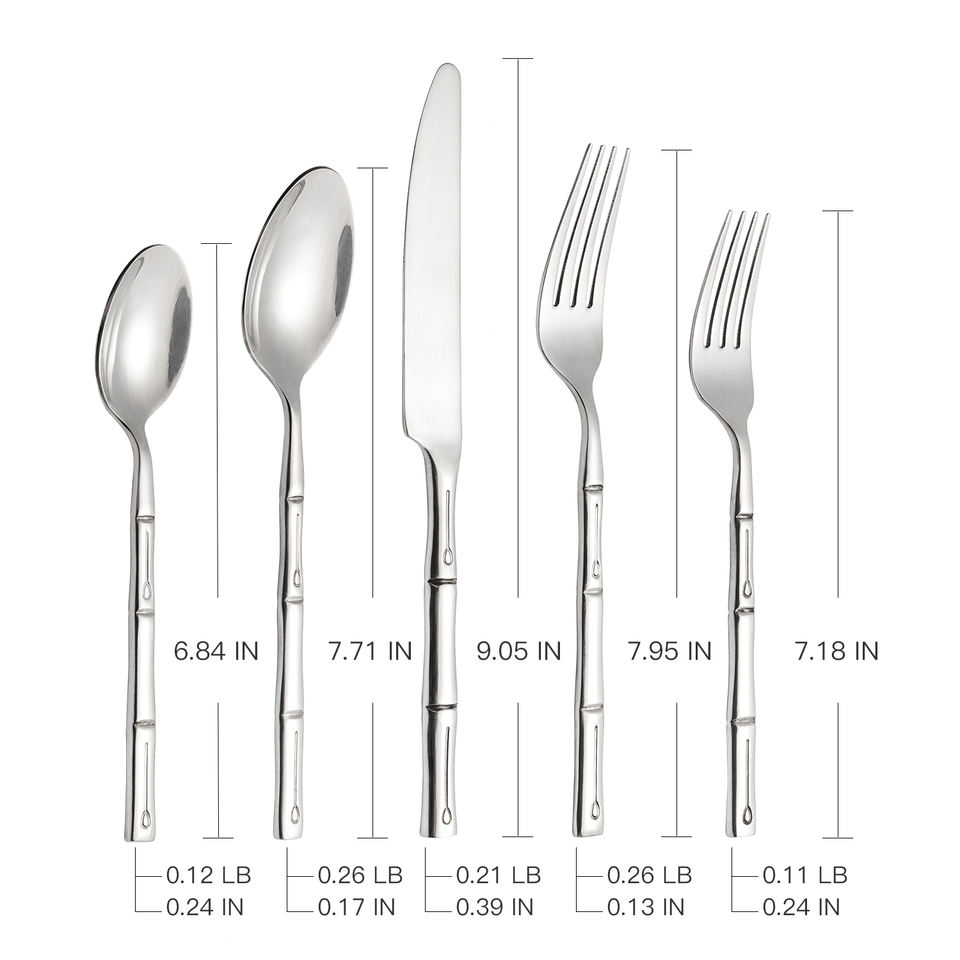 5 Pieces Stainless Steel Bamboo Handle Silverware Thick Cutlery Fork Spoon Knife Wedding Flatware Set
