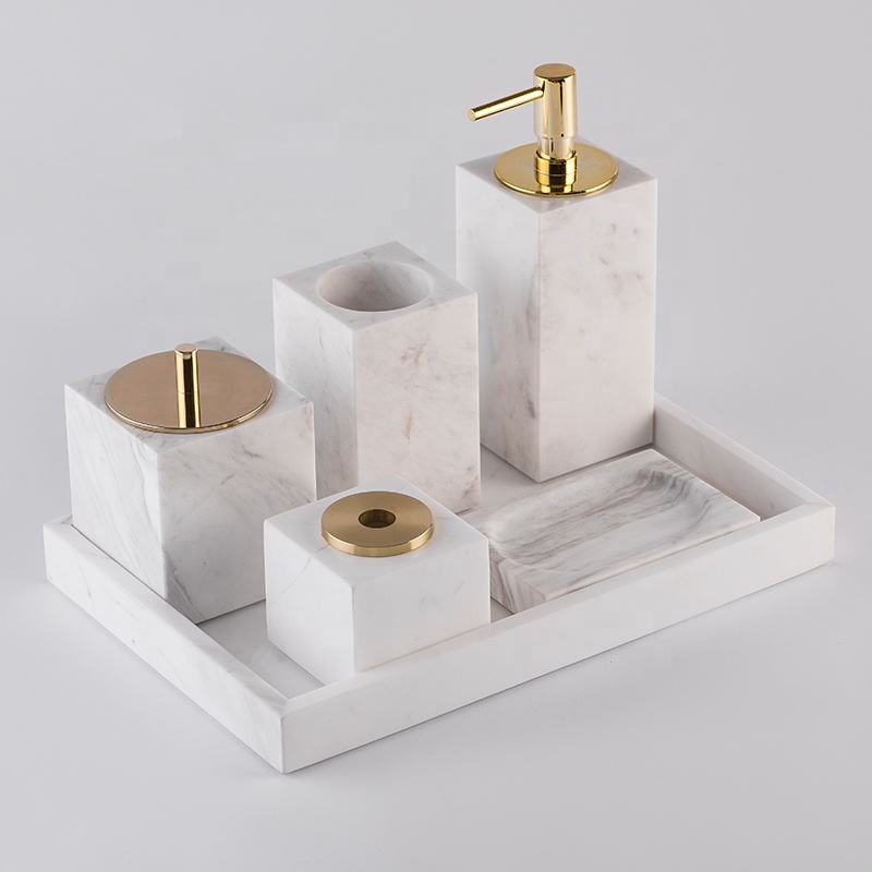 5 Star Hotel Natural White Marble Stone Square Type Bathroom Accessories Set
