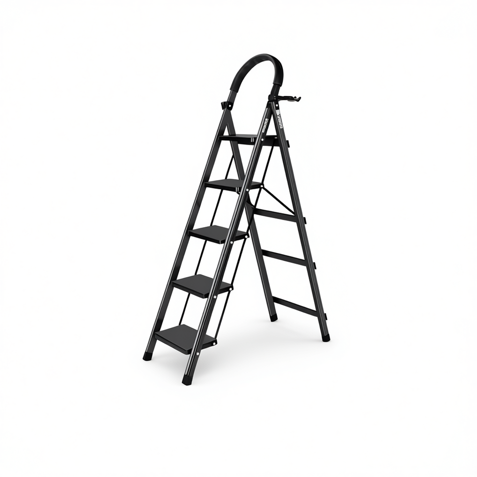 5 Step Steel Step Ladder 300 Lbs Capacity Foldable For Home Kitchen Office Use