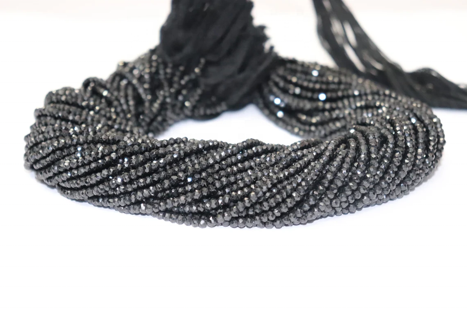 Black spinel Faceted Rondelle Beads