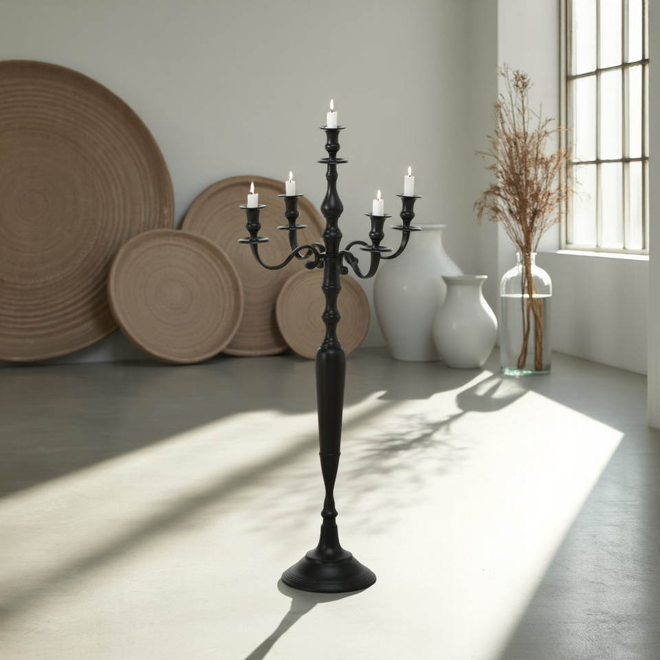 5 Tier Black Floor Candle Holder for Side Corner Living Room Bedroom Dining Room Event Decoration and Interior Styling