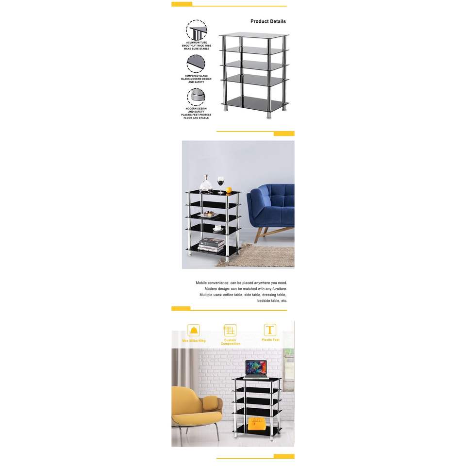 5-Tier Black Tempered Glass Stand Stainless Steel Frame Multi-Function Media TV Stand for Xbox PS4 Top Glass 88 Lbs Capacity