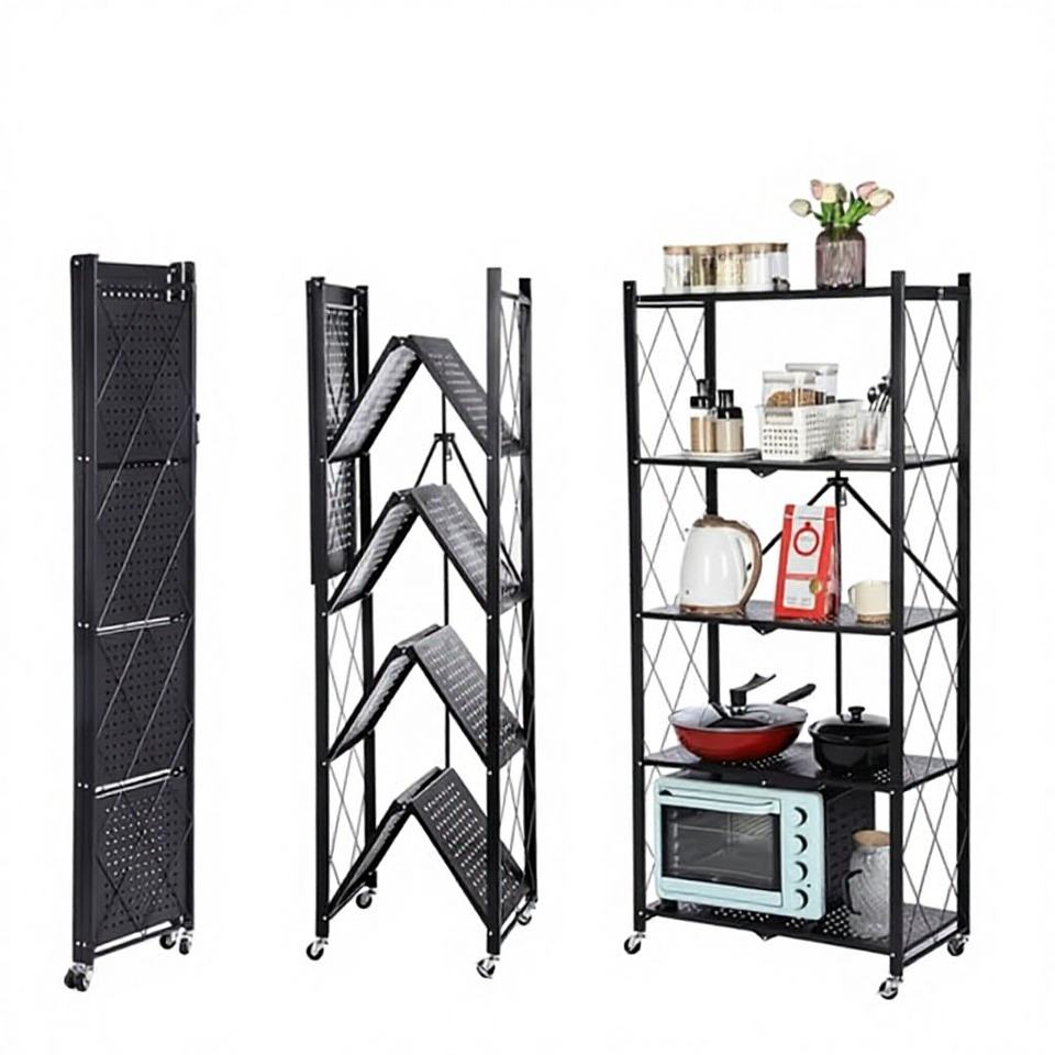 5 Tier Eco-Friendly Folding Floor Carbon Steel Storage Shelves-Black