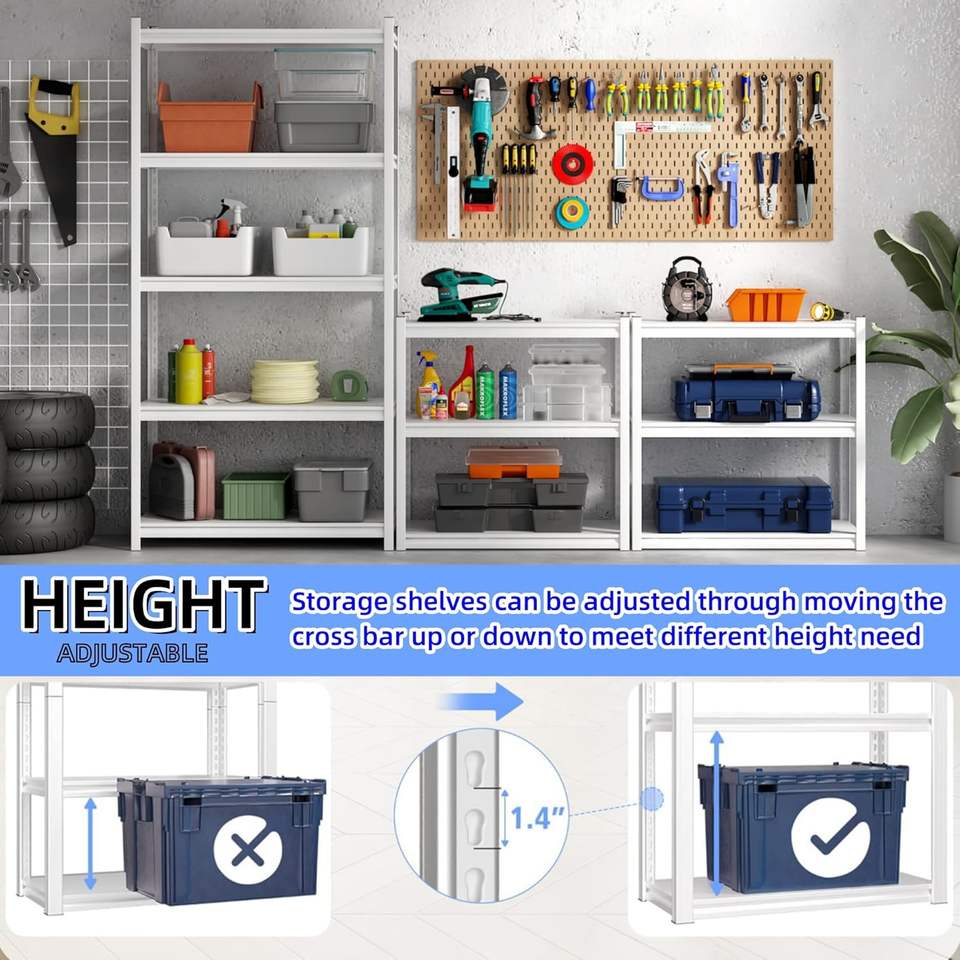 3 Layer Metal Standing Storage Rack Kitchen Shelving Heavy Duty Industrial Utility Rack Detachable for Tools White
