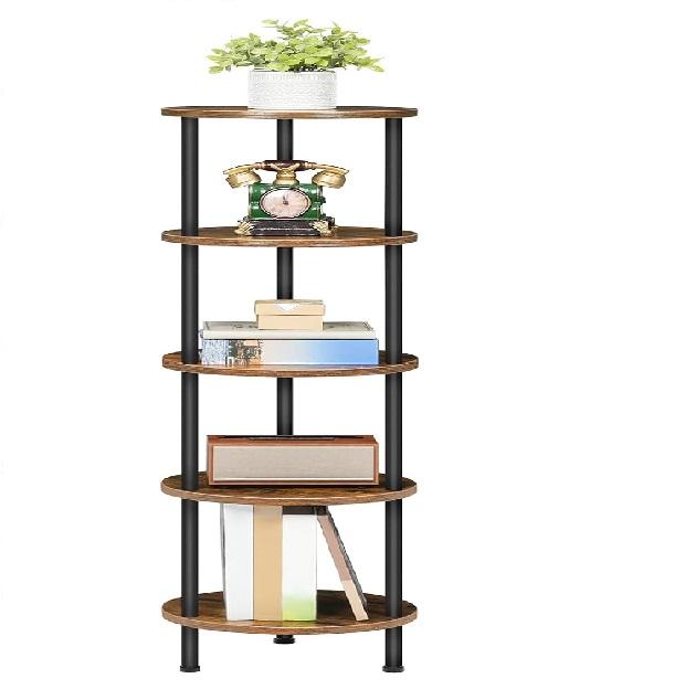 5-Tier Round Standing Shelf, , Wall Corner Bookshelf for Small Spaces, Corner Plant Stands for Living Room, Rustic Brown