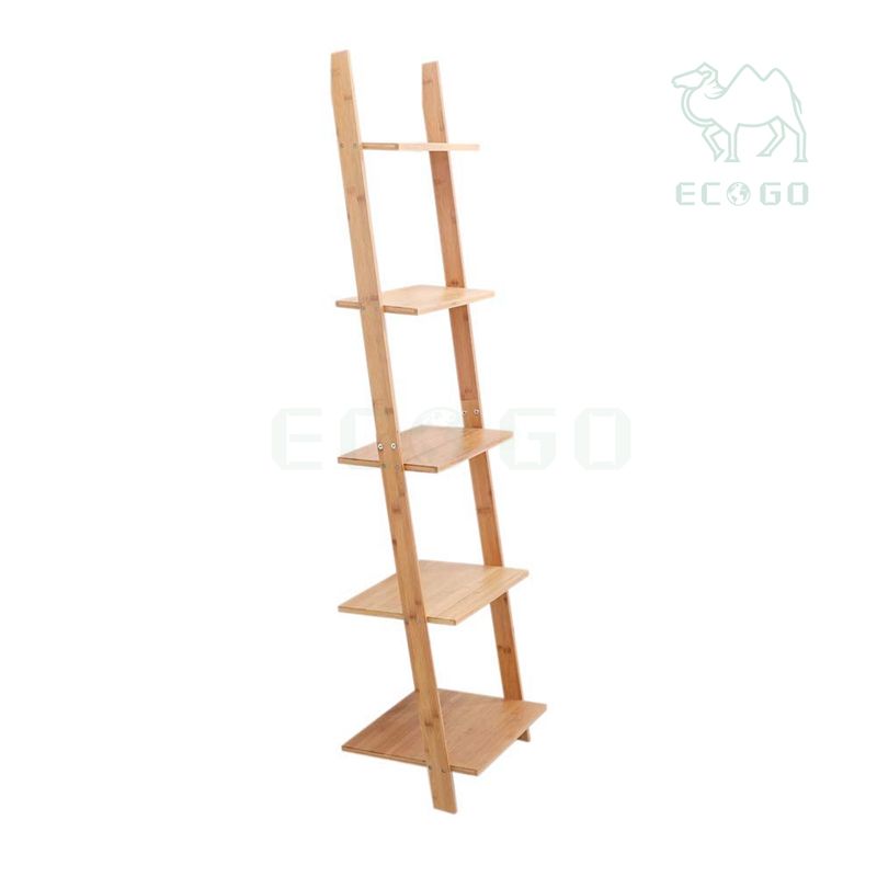 5-Tier Wall-Leaning Bookshelf Ladder Utility Organizer Shelves Stable Bookcase Ladder Shelf