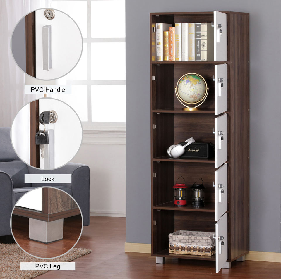 5 Tiers Large Home Furniture Storage Cabinet Locks Legs for Multipurpose Multifunction School Model 5DLF (Columbia Walnut +