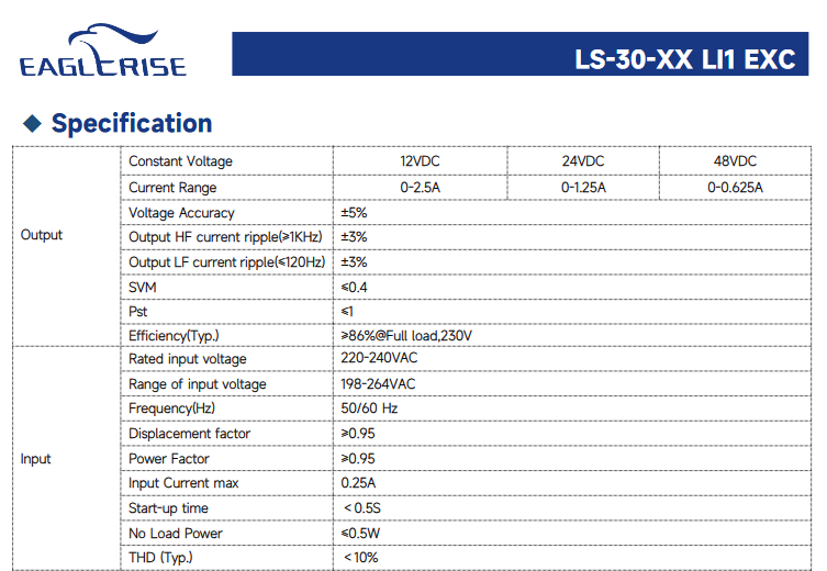 5-Year Warranty EAGLERISE LS-30 Series AC-DC LED Lighting Power Supply 30W 12V/24V/48V Constant High Efficiency Aluminum