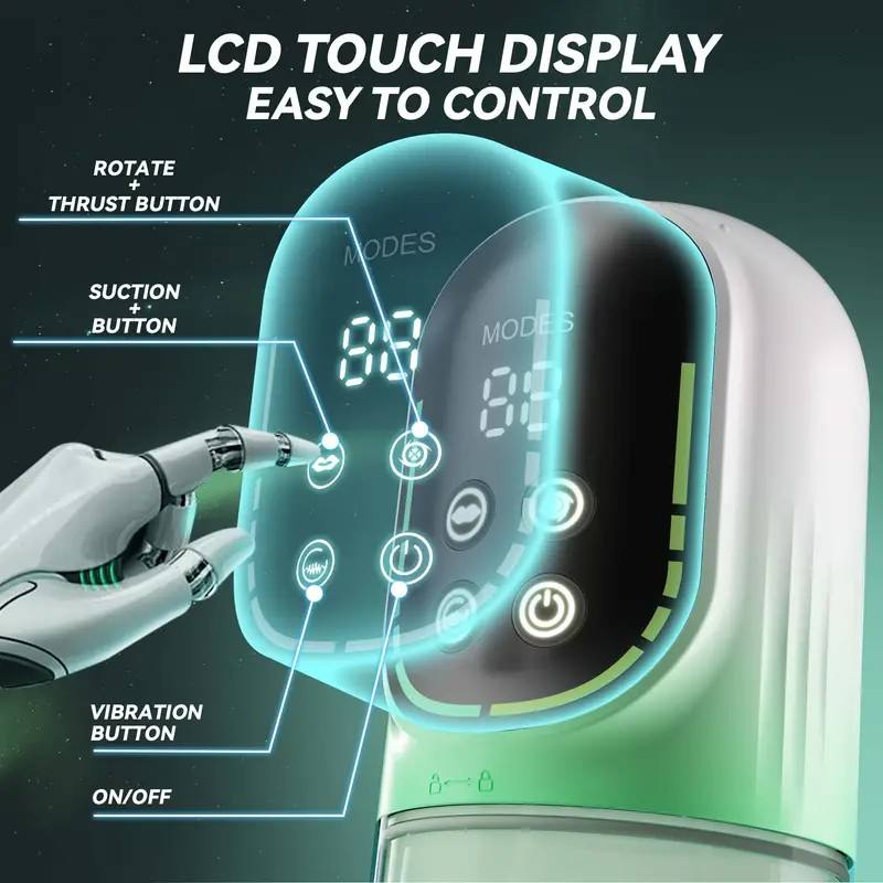 5 in 1 LCD Display 3D Realistic Textured Automatic Thrusting Rotation Sucking Masturbator Pump