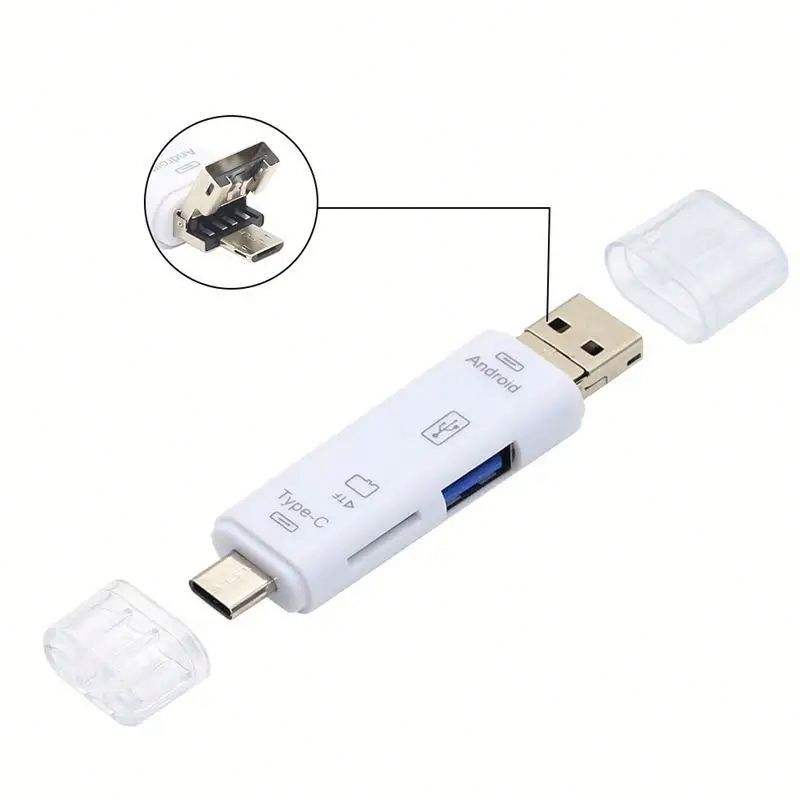5 in 1 Multifunction Type C Micro USB to USB OTG USB 2.0 TF Card Reader Adapter Type-C Flash Drive Adapter for Android Computer