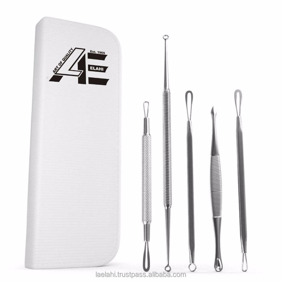 5-in-1 Professional Stainless Steel Hand Held Waterproof Comedone Extractor Kit Blackhead Remover Pimple Acne Blemish Removal