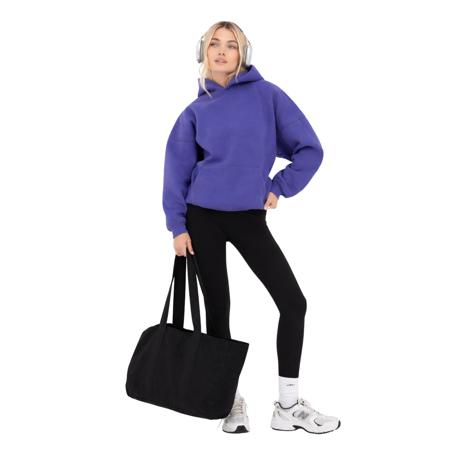 50% Cotton 50% Polyester Bold Purple Womens Oversized Long Fleece Hoodie Pullover Streetwear Drop Shoulder Relaxed Fit Winter