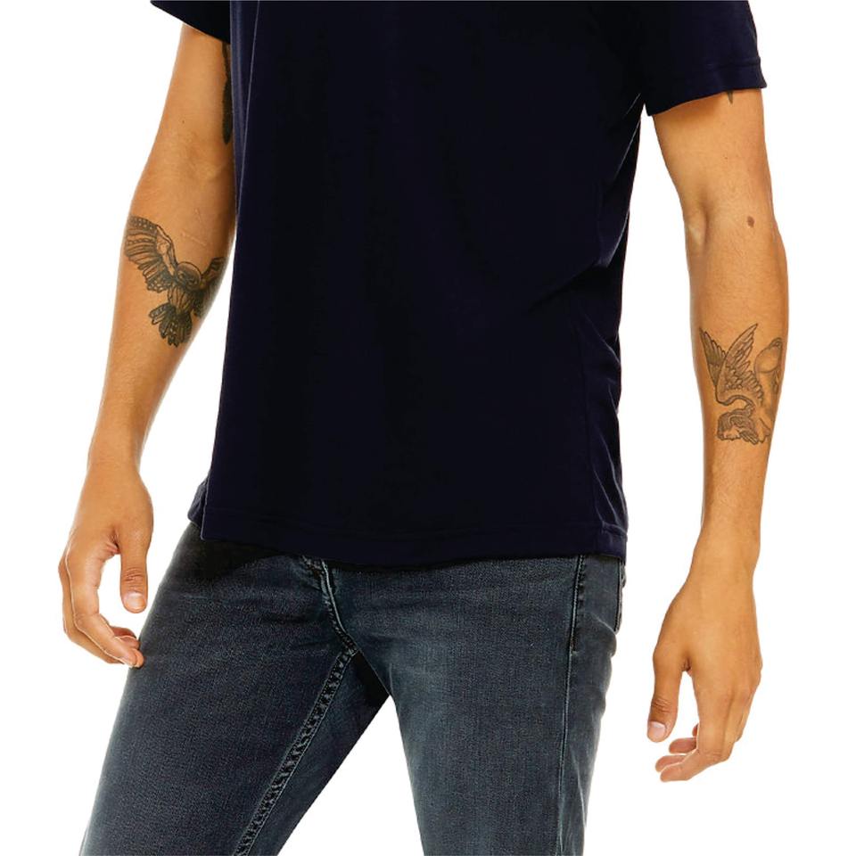 50% Poly 25% Airlume Combed and Ring Spun Cotton 25% Rayon 40 Single 3.8 oz Solid Black Unisex Short Sleeves T-shirt for men