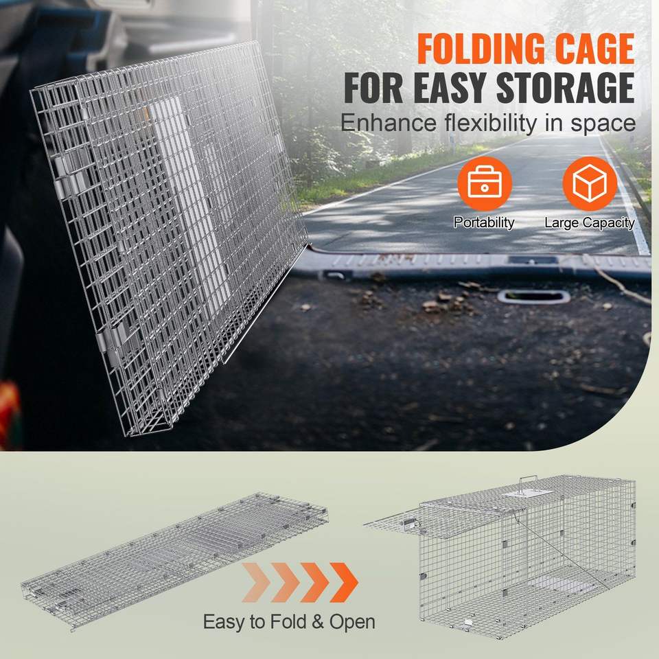 50\" X 20\" X 26\" Live Animal Humane Cat Cage Trap Galvanized Iron Folding Animal Husbandry Equipment Handle for Stray Dogs