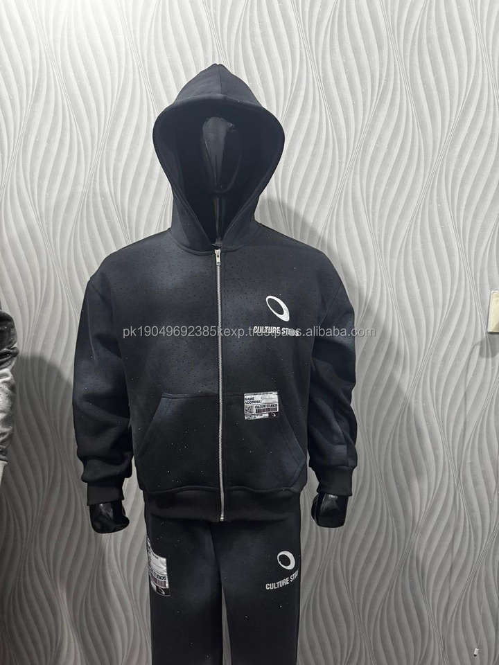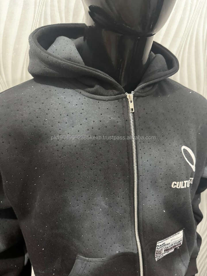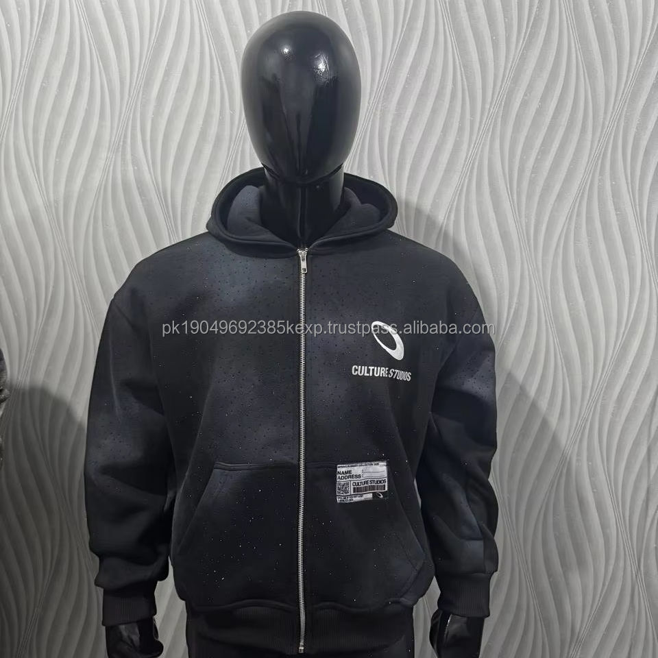 500 GSM Acid Washed Heavyweight Fleece Winter Hoodies Clush Industries Black Sun Faded Unisex Men Women Custom Metal Zipper