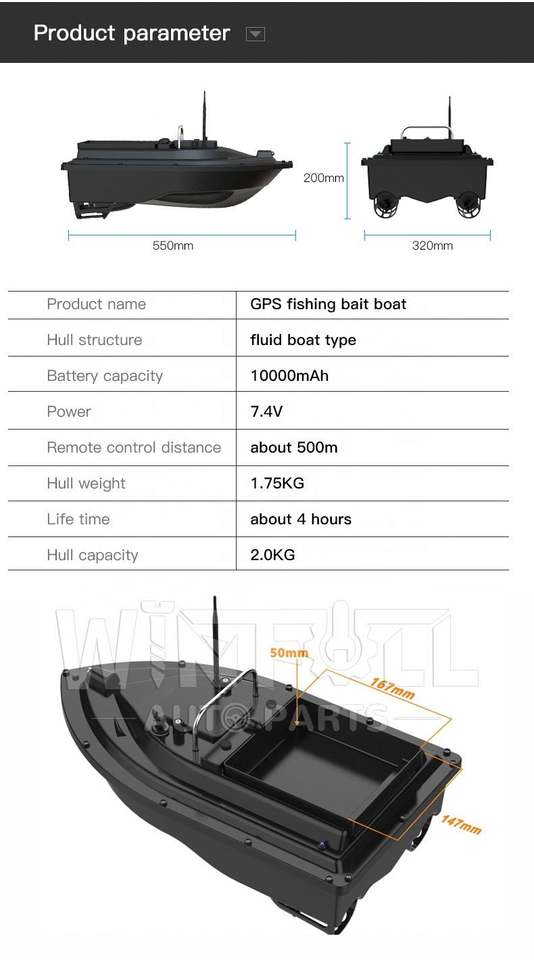 500M Remote Control GPS RC Fishing Boat Double Motor Night Light 1.5kg Load Fish Finder Bait Boat ABS Material 10000mAh Battery