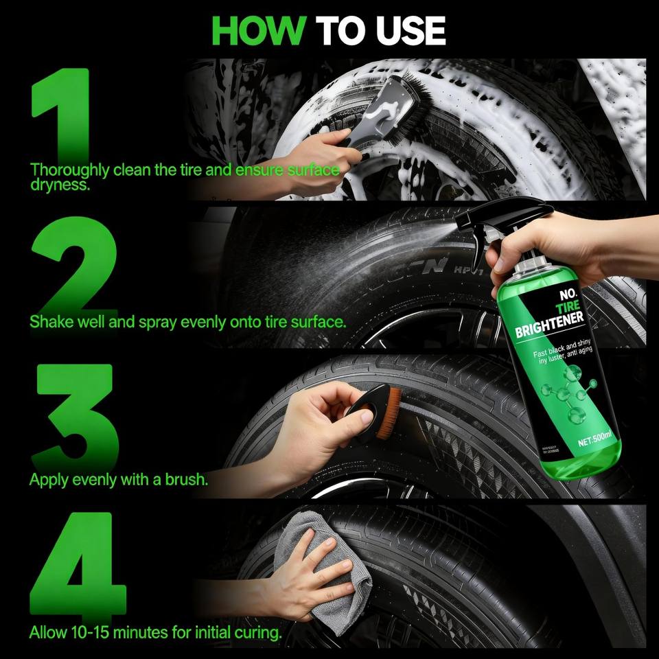 500ML Tire Shine Spray High Gloss Long-Lasting UV Protective Quick Dry pH Neutral No Rinse Car Tire Dressing 5-Year Expiration