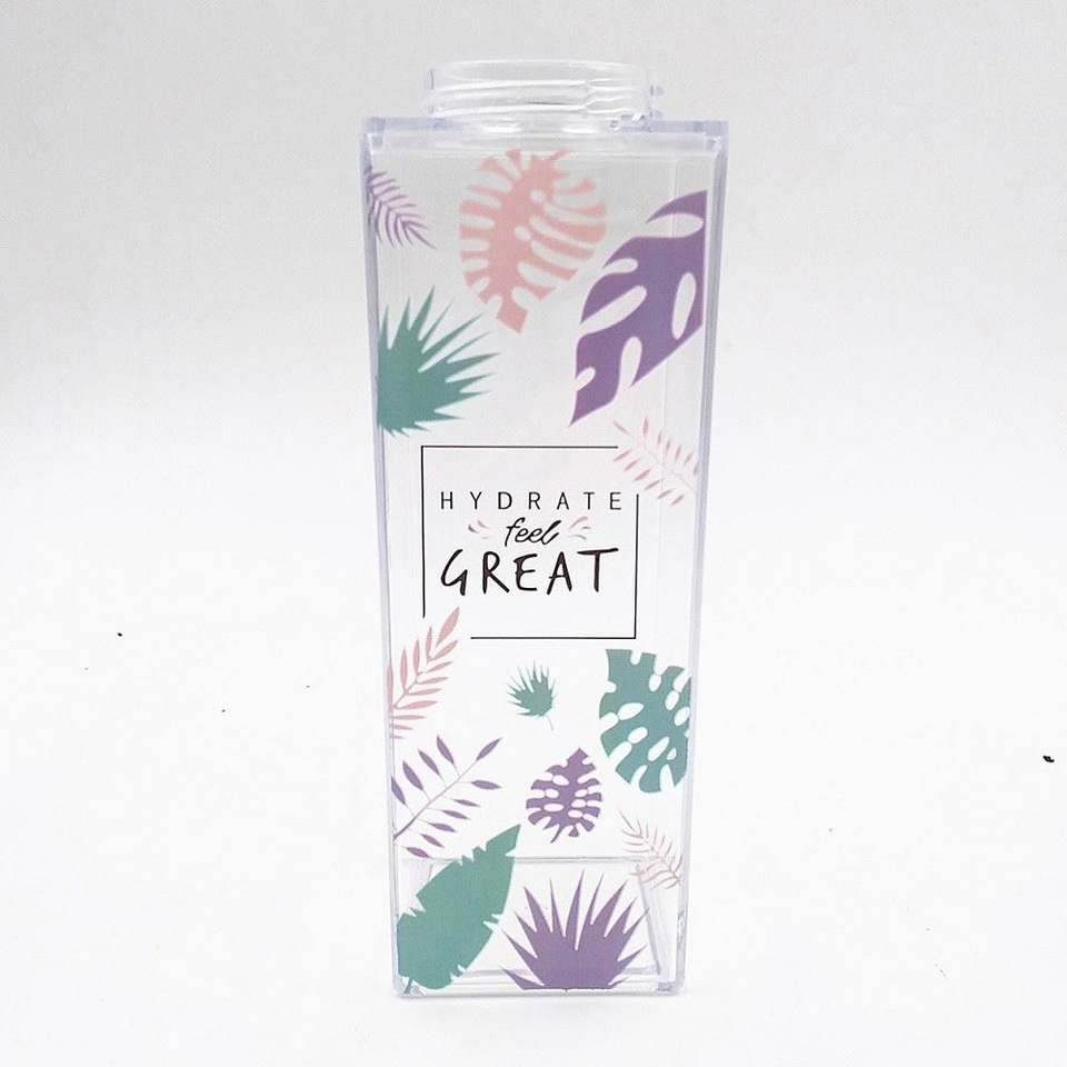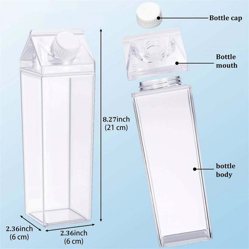 500Ml 1000Ml Cute Milk Bottle Plastic Clear Transparent Colored Cartoon Acrylic Plain Juice Milk Box Shaped Water Bottle