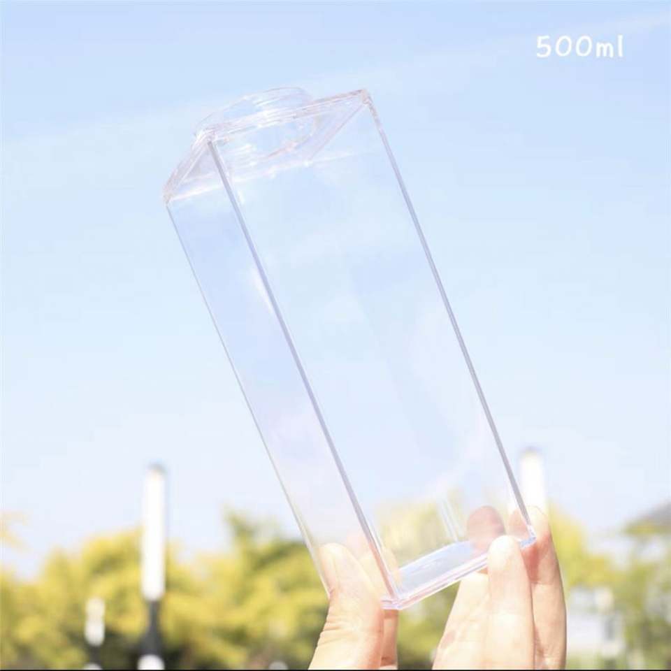 500Ml/1000Ml Transparent Milk Carton Plastic Cardboard Custom Water Bottle Clear Square Milk Box Juice Bottles