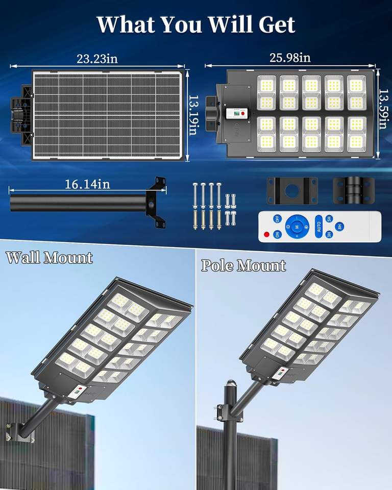500W 1000W 1500 Wattage High Lumen Motion Sensor Solar Security Waterproof Outdoor Solar Powered Street Light
