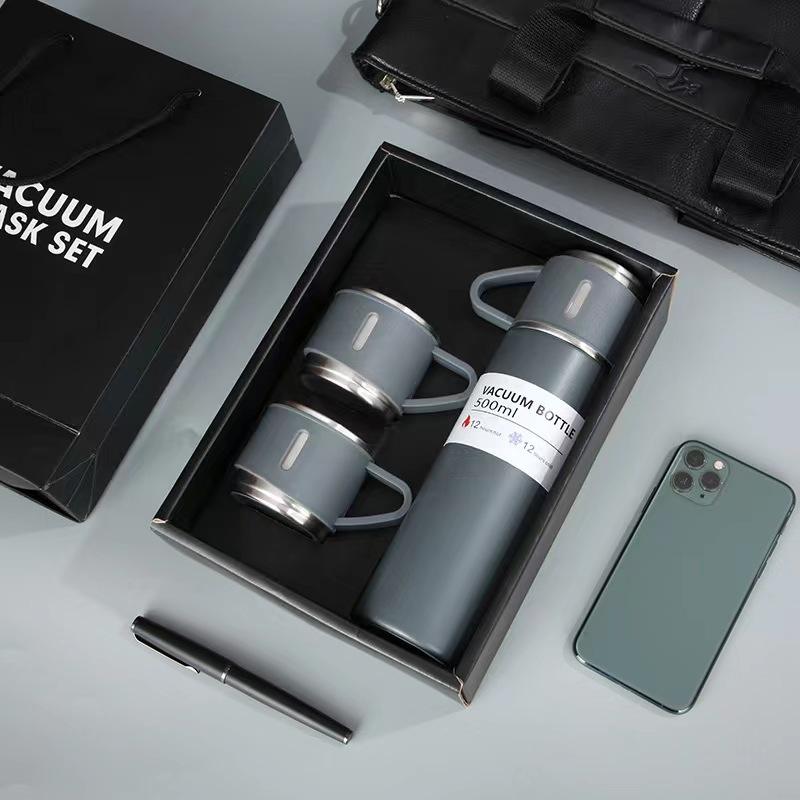 500ml 17oz Wholesale Classic 304 Stainless Steel Tea Cup Set with Three Lids Vacuum Thermos for Business Gifts