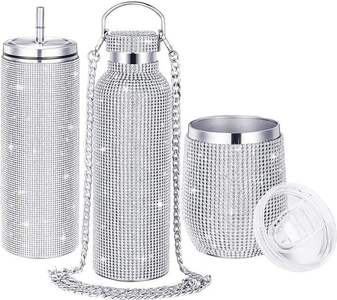 500ml Portable Rhinestone Diamond Stainless Steel Drink Water Bottle Outdoor Sports Travel Bling Thermos Bottles