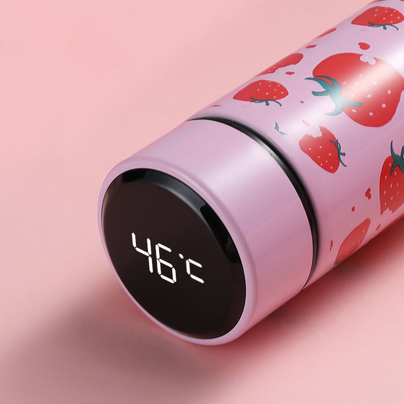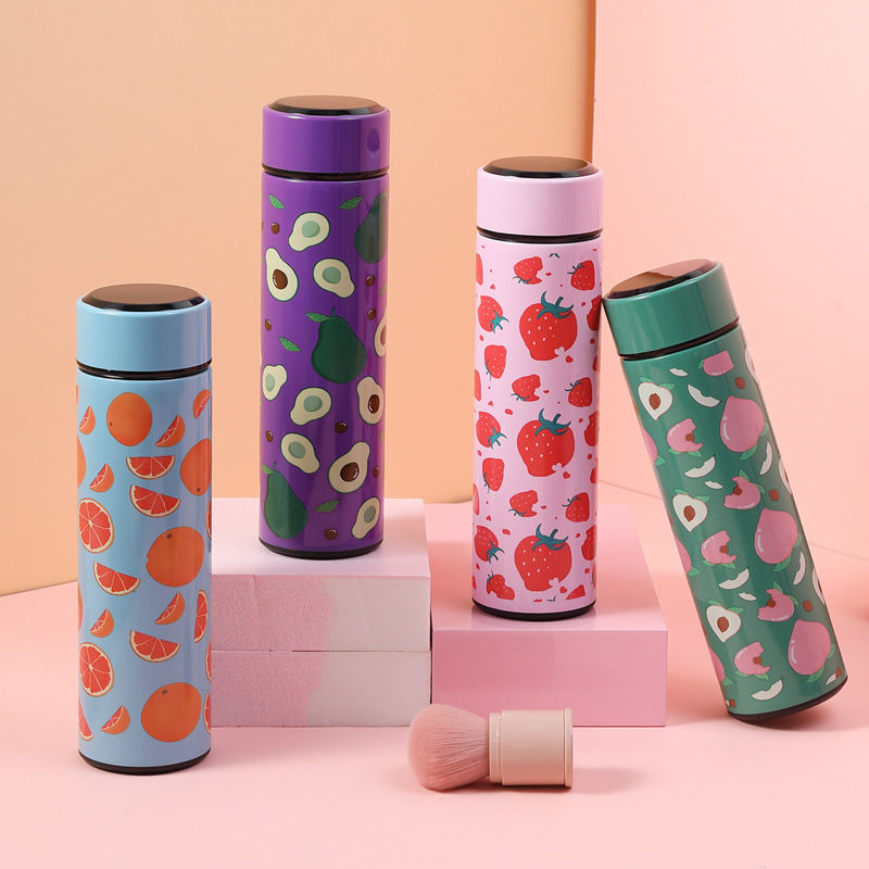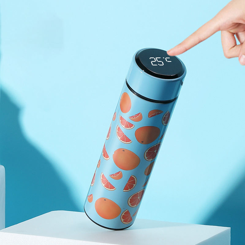 500ml Stainless Steel Water Bottle Fruit Print Thermos Cup Mart Vacuum Flask LED Temperature Display Kettle S