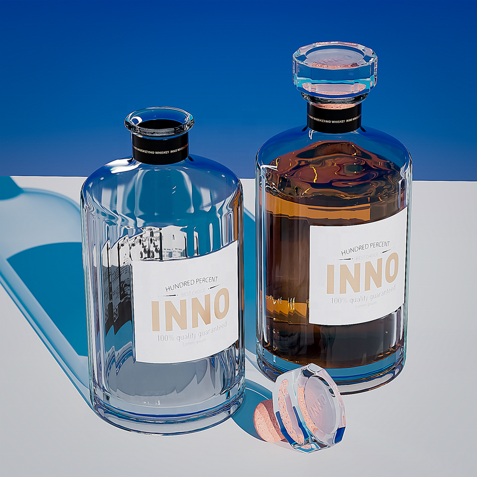 500ml Thick Glass Whiskey Bottle with Cork/Screw Cap | Customizable Spirits Bottle for Distillery Branding