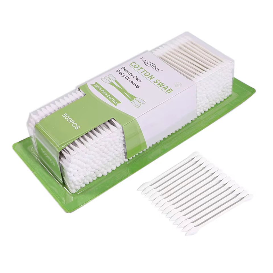 500pcs White Cotton Bud Swab with Quality Paper Stick Safe and Harmless Sanitary Products with Apical Platycephaly Branches