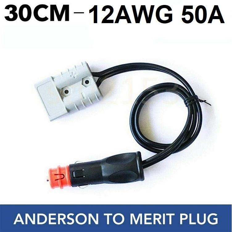 50A Andersan Connector Cigarette Plug Adapter with 12AWG 300mm Black Cables for Andersan to Plug Wiring Harness