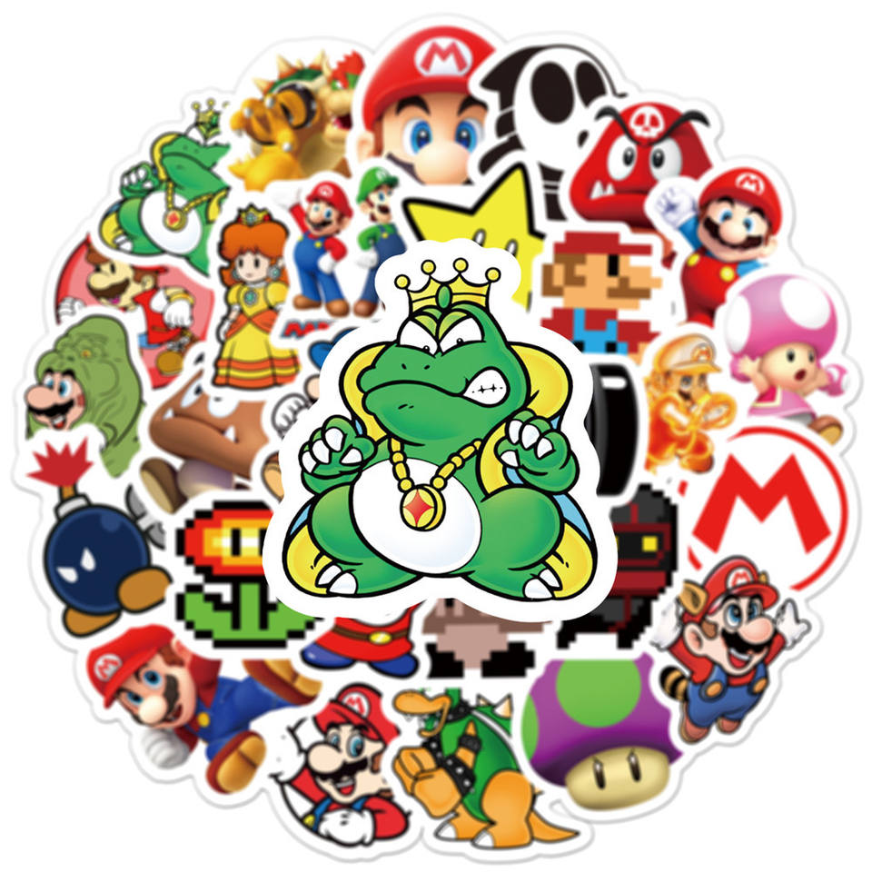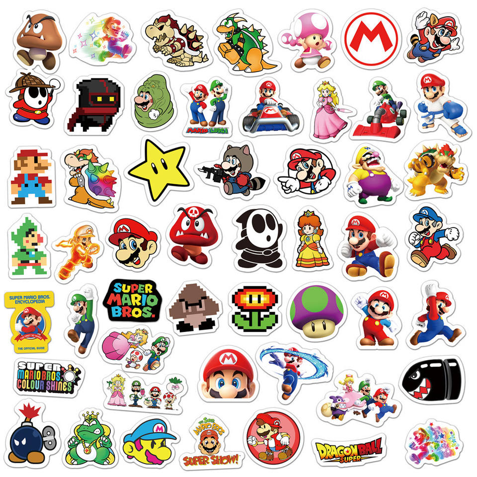 50Pcs New Style Game Mario Decorative Stickers Label for Luggage Laptop Guitar Scrapbook Skateboard Waterproof Sticker